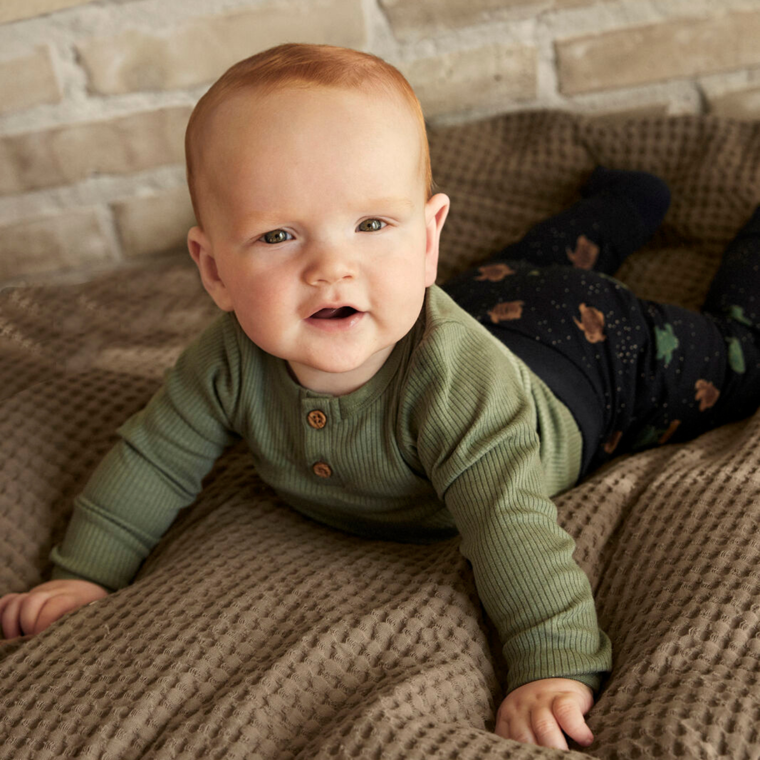 Statt Hemdchen und Hose separat anzuziehen, kommt der Strampler als Alleskönner daher. Einfach reinschlüpfen, und schon ist das Baby angezogen. Der Schnitt ist super durchdacht, nichts verrutscht, auch nicht, wenn das Baby sich begeistert strampelt oder beim Krabbeln die ersten Abenteuer erlebt. Ganz nebenbei bleiben der kleine Bauch und Rücken immer schön warm – für uns ein riesiger Pluspunkt, gerade in den kälteren Monaten.