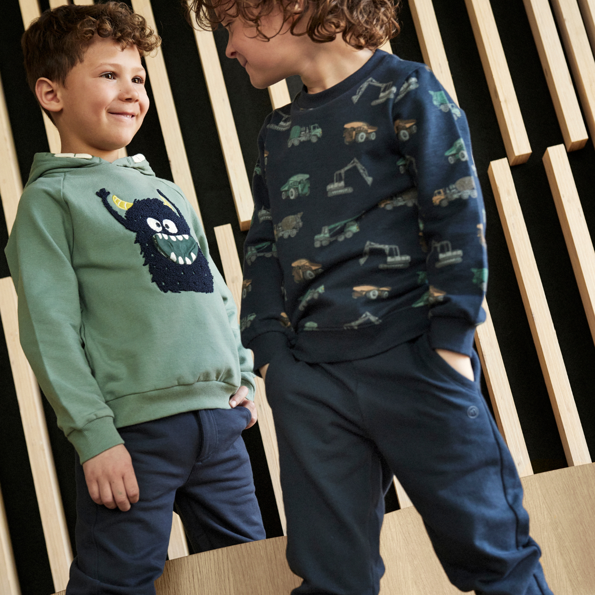 Kinderpullover mit Bagger- & Lasterprint – perfekt für kleine Baustellenfans