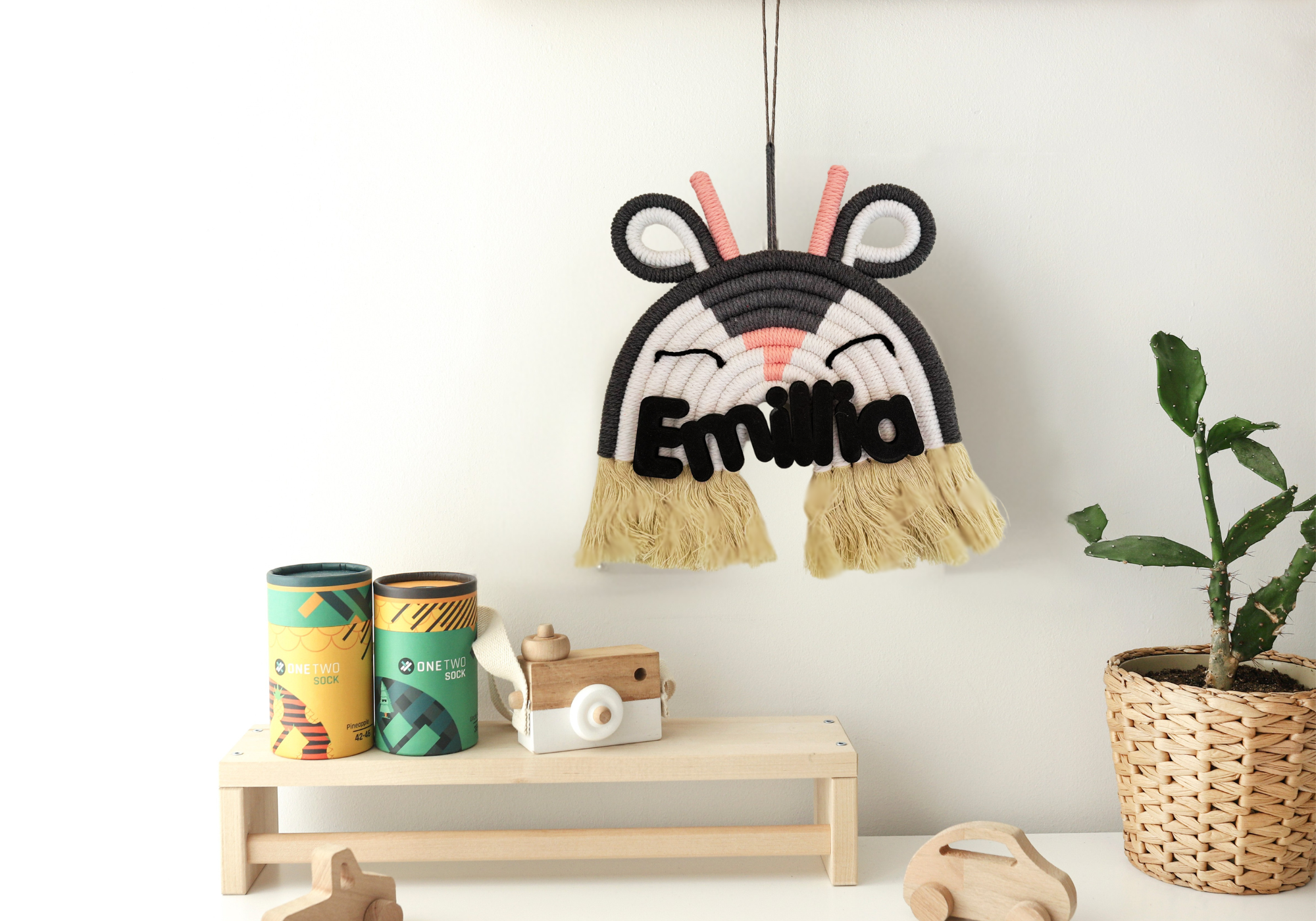 Das personalisierte Makramee ist eine super Ergänzung zu unserem Kinderzimmer.